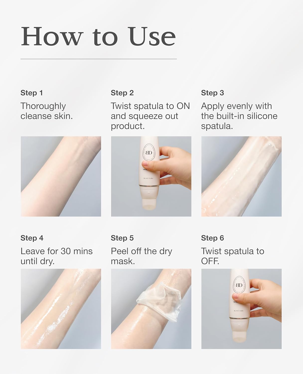 The Dalgyal Mask (“dalgyal” meaning egg in Korean) is a rich, non-greasy, fast-absorbing peel-off mask for all skin types. While peel-off masks are undeniably satisfying to remove (ideally in a single layer), their true benefits lie in the skincare benefits they deliver — luminosity, smoother-looking skin, and less noticeable signs of aging — often visible immediately after use. Formulated 69% collagen water, our peel-off mask locks in skin's moisture and helps maintain the skin's protective barrier. Featuring egg yolk extract, amino acids, patented plant ferments, and bakuchiol, this 20-minute peel-off mask simplifies your skincare routine into one step. The built-in spatula applicator provides a convenient and effective way to evenly apply the mask. Whether you are preparing for a special event, on holiday, or simply relaxing at home, leave the mask on until completely dry and transparent, and then gently peel off to unveil the look and feel of smooth, supple, and youthful-looking skin.