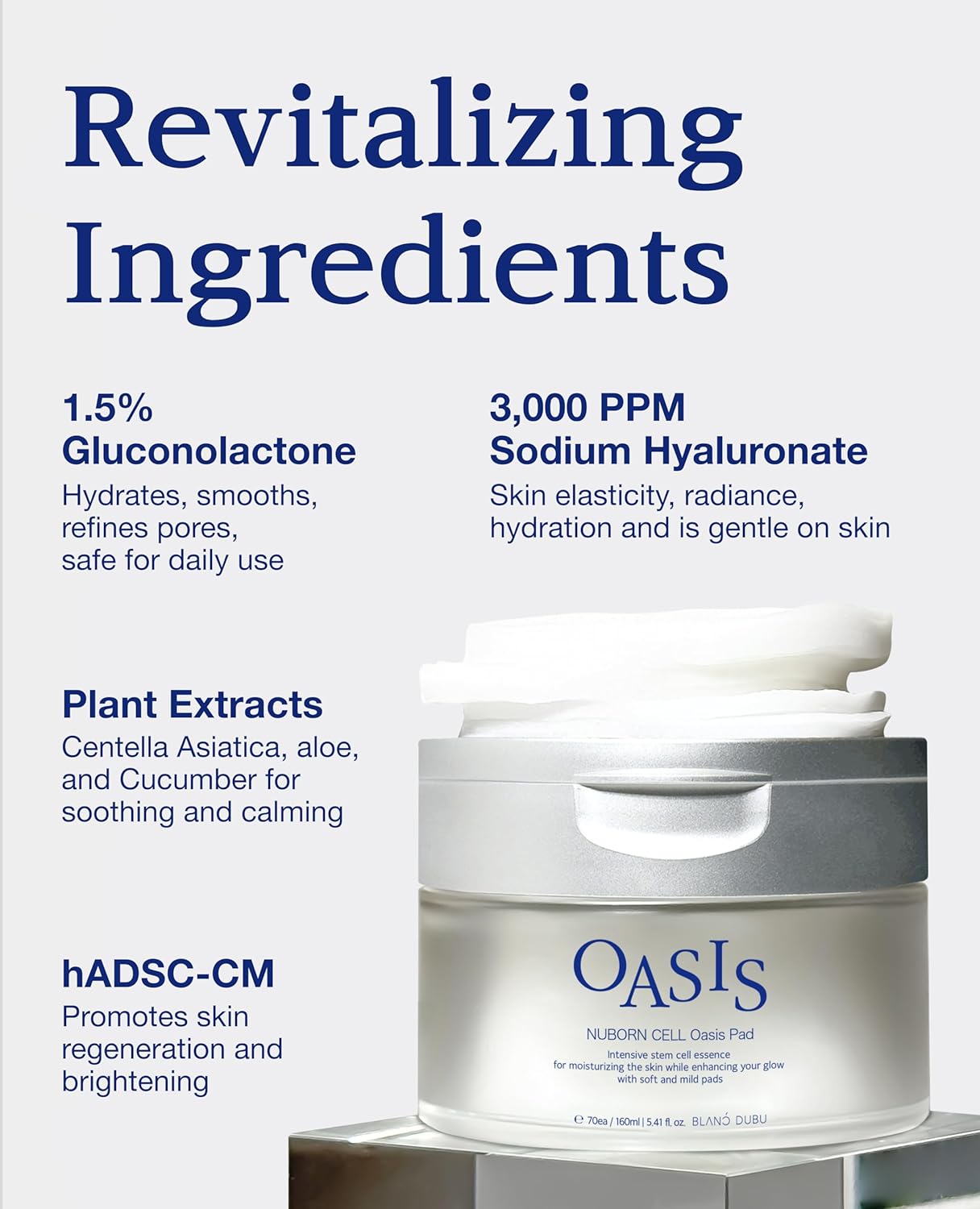 Featuring 70 pre-soaked pads, it seamlessly fits into any step in your basic skincare routine — as a pre-cleanse treatment, a post-cleanse toner, or even as a targeted hydration sheet mask. Formulated with next-generation Polyhydroxy Acids (PHAs) and human fat stem cells, it works to restore the look of supple youthful-looking skin and maintain the skin’s natural moisture barrier. This makes it an ideal for all skin types, especially sensitive skin. Each pad is generously saturated in a ultra-moisturizing essence infused with aloe, centella asiatica, cucumber extracts, delivering instant hydration with a single swipe. Experience a true oasis for dry skin, leaving your skin cleansed, refreshed, deeply hydrated, and adorned with a luminous glass-skin glow.