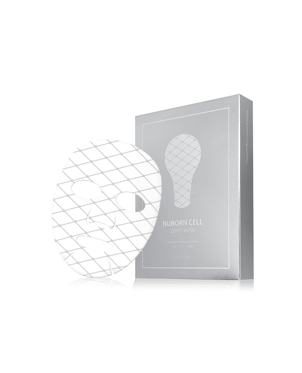 Nuborn Cell Zzirit Mask is a cutting-edge facial sheet mask designed with a hypoallergenic pure silver mesh. This conductive material imparts a naturally occurring flux of electric micro-currents, enhancing the exchange between the skin and the essence contained in the sheet. The silver mesh also offers excellent mask adhesion to the skin, preventing any gaps in application and effectively delivering intense hydration to the skin. Infused with stem cells, this rich and innovative formula draws water into the skin and acts as an occlusive, minimizing the appearance of fine lines and wrinkles. In just 10-20 minutes, the skin absorbs the soothing and ultra-hydrating essence, leaving it noticeably dewy and radiant. In line with our skin-first philosophy, Nuborn Cell Zzirit Mask dramatically improves the look of lackluster skin and alleviates dryness.